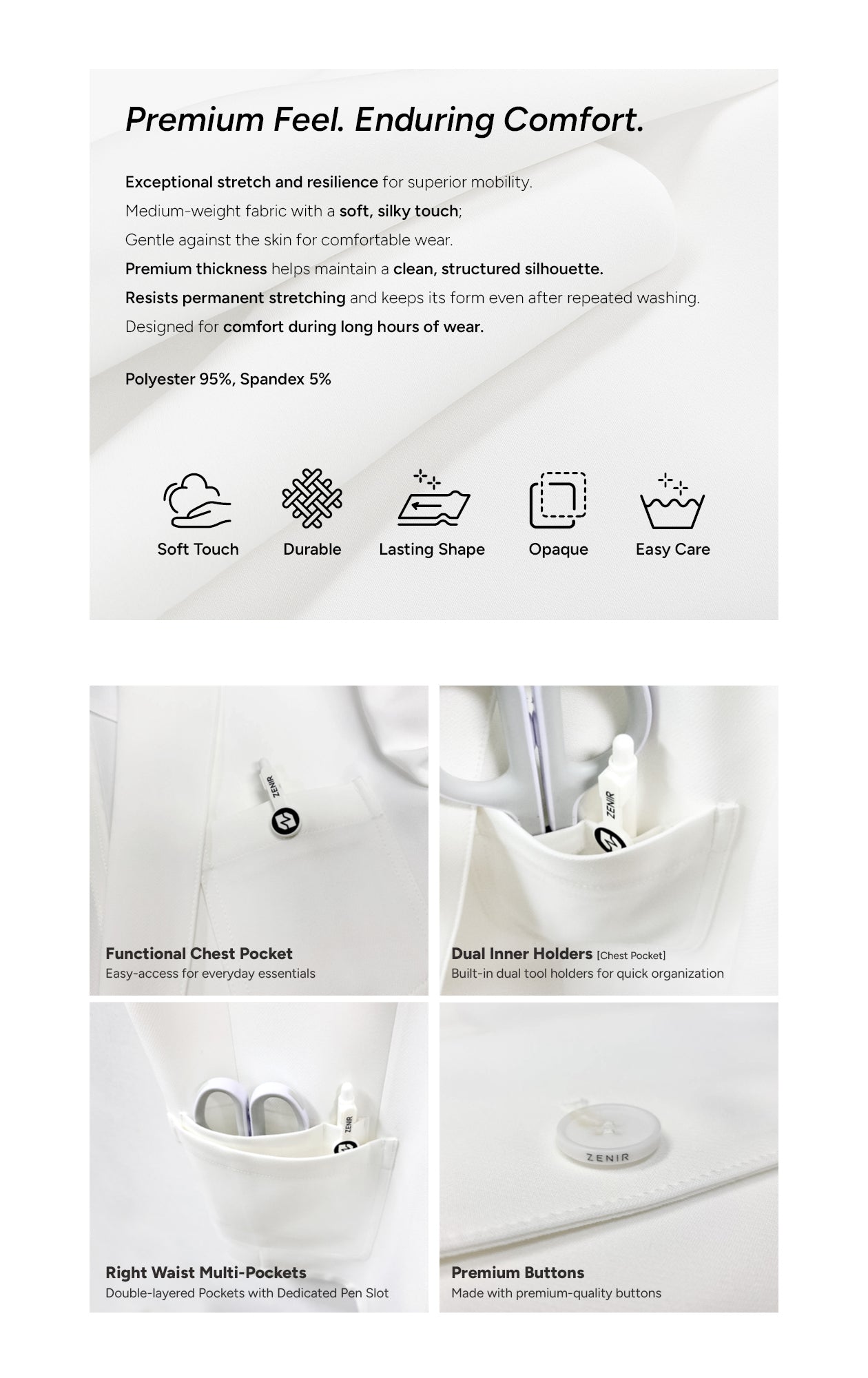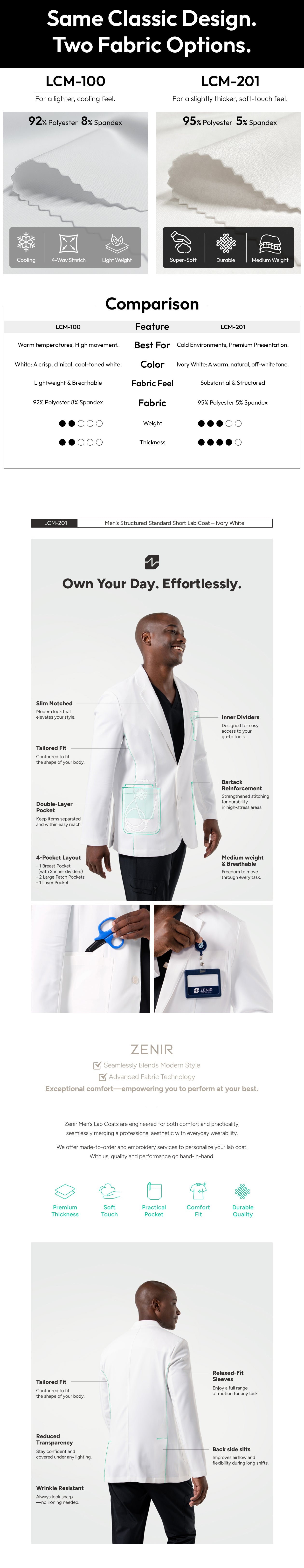 The LCM-201 Standard Short Lab Coat delivers professional protection with minimal maintenance demands. Crafted in crisp white, this lab coat maintains a clean, polished appearance throughout your workday. The streamlined design resists wrinkles and stains, while the durable fabric withstands frequent washing without fading or deterioration.