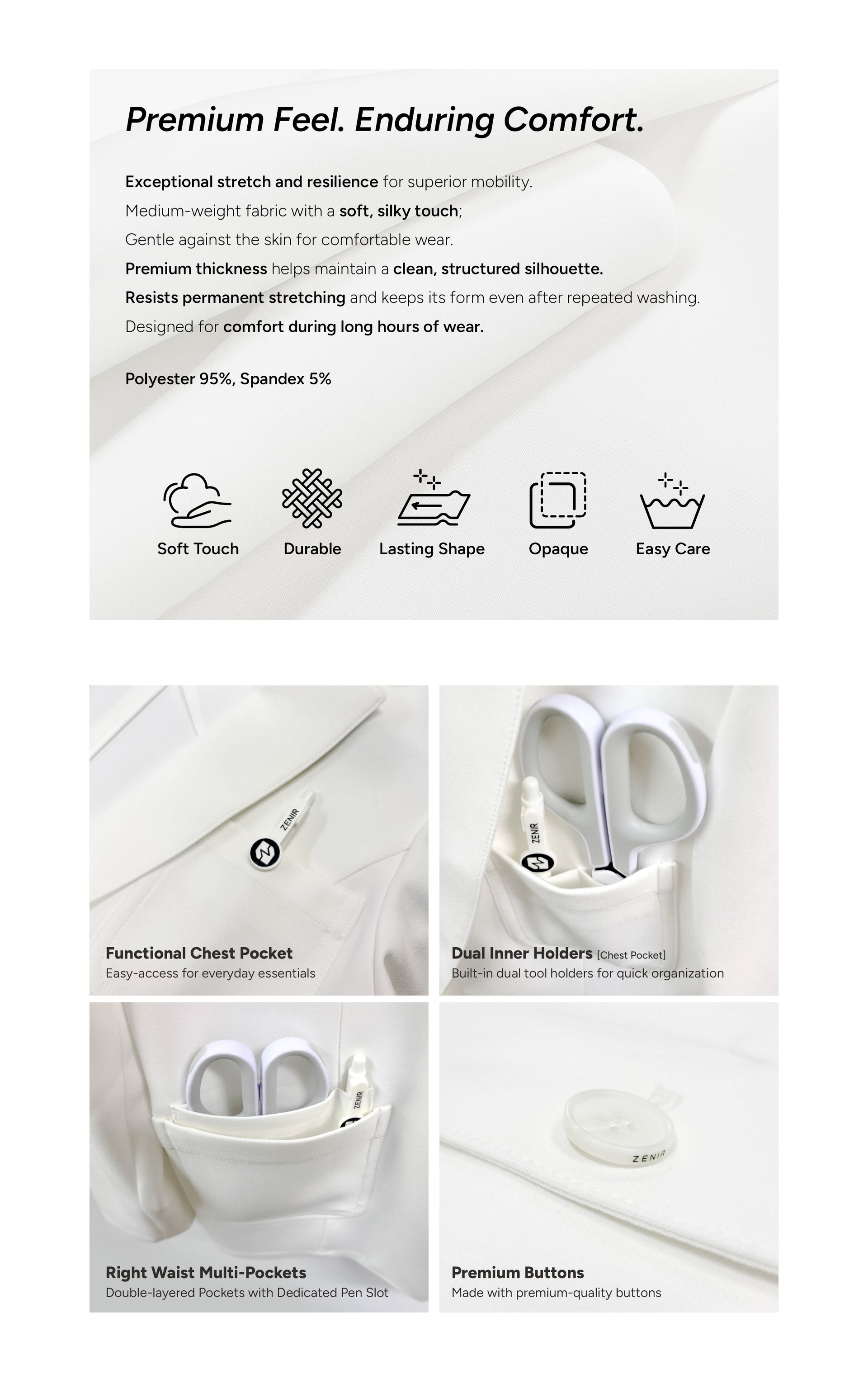 Zenir | Structured Classic Short Lab Coat LCW-201 - Ivory White