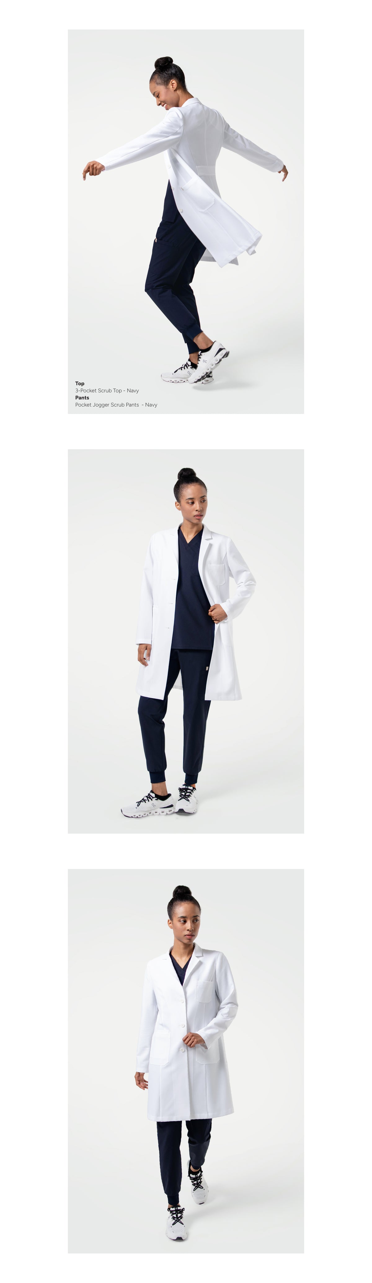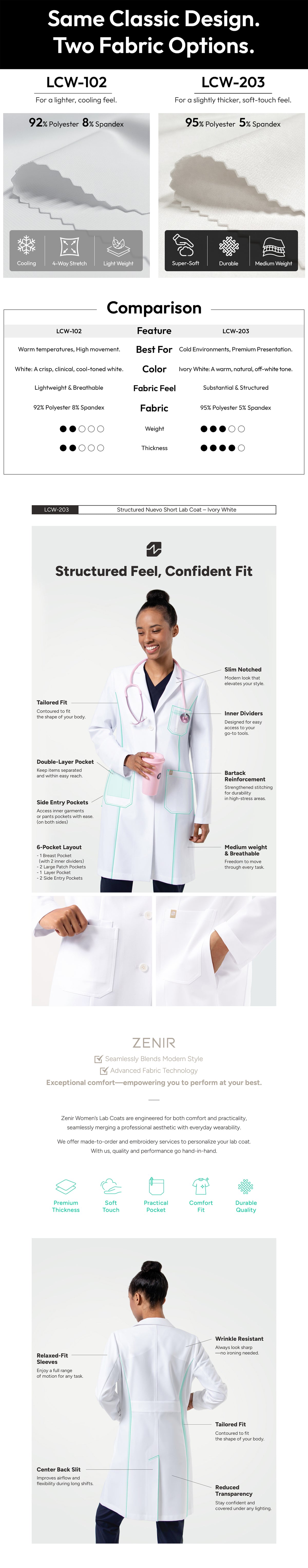The LCW-203 Structured Nuevo Short Lab Coat offers timeless professional styling with a streamlined silhouette designed for clinical environments.