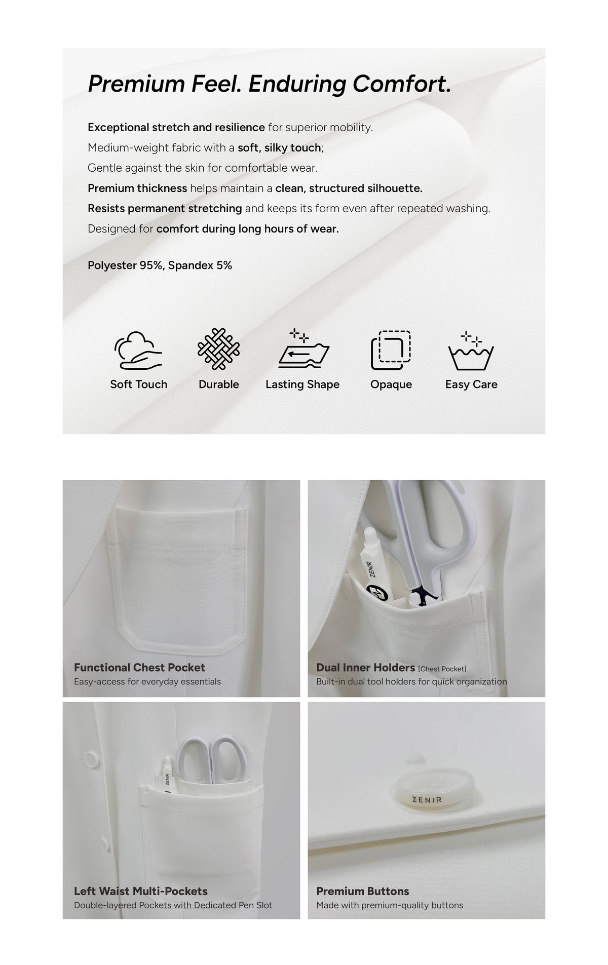 Zenir | Structured Nuevo Long Lab Coat LCW-203 - Ivory White