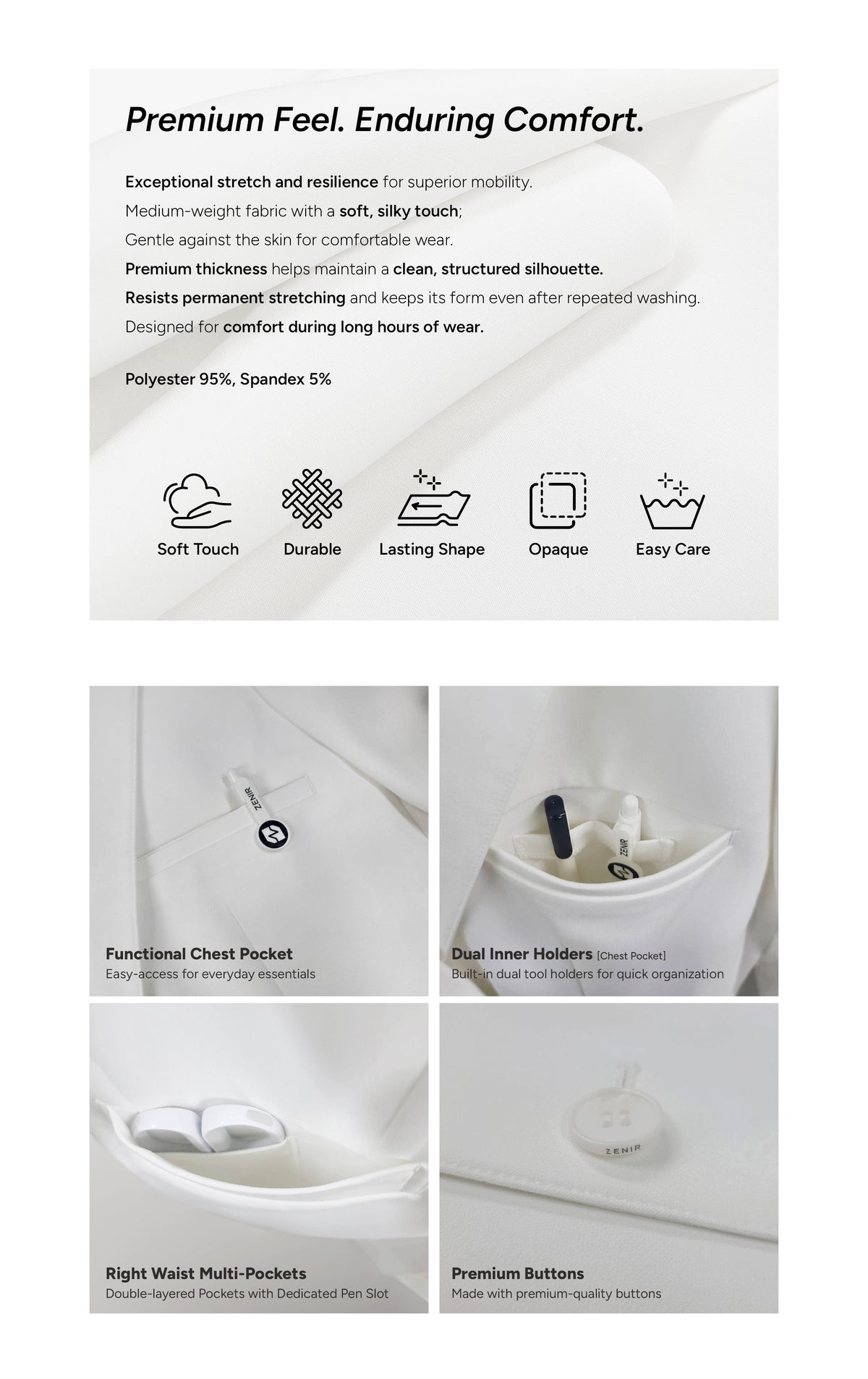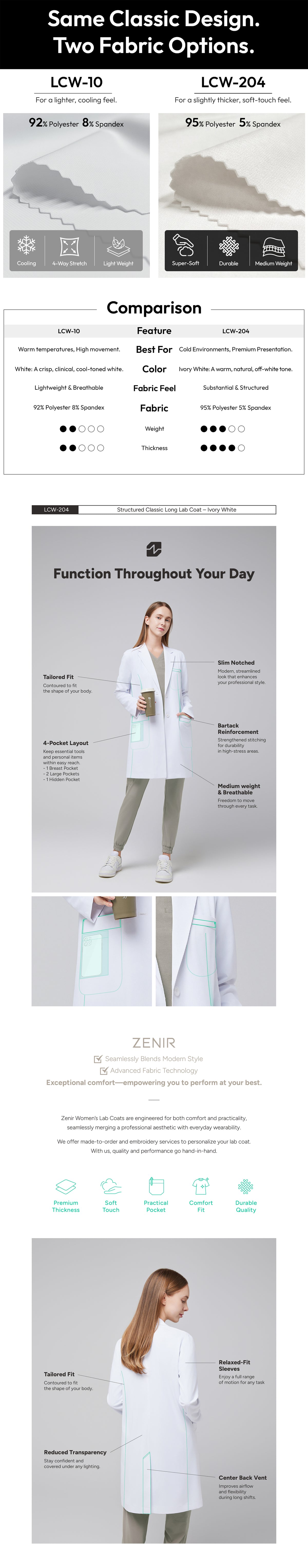 Zenir | Structured Nuevo Long Lab Coat LCW-204 - Ivory White