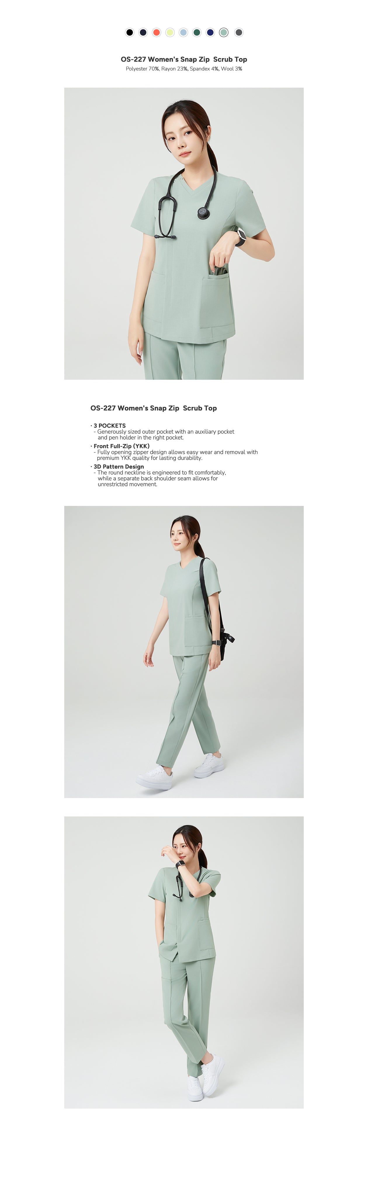 Crafted for professionals, the TUL OS-227 Women's Stretch-Zip Scrub Top in Surgical Green offers superior comfort with its flexible fabric and tailored fit. Its sleek, polished appearance ensures a refined look throughout demanding shifts, while high-quality materials provide durability and lasting wear. Ideal for medical settings requiring both style and functionality.