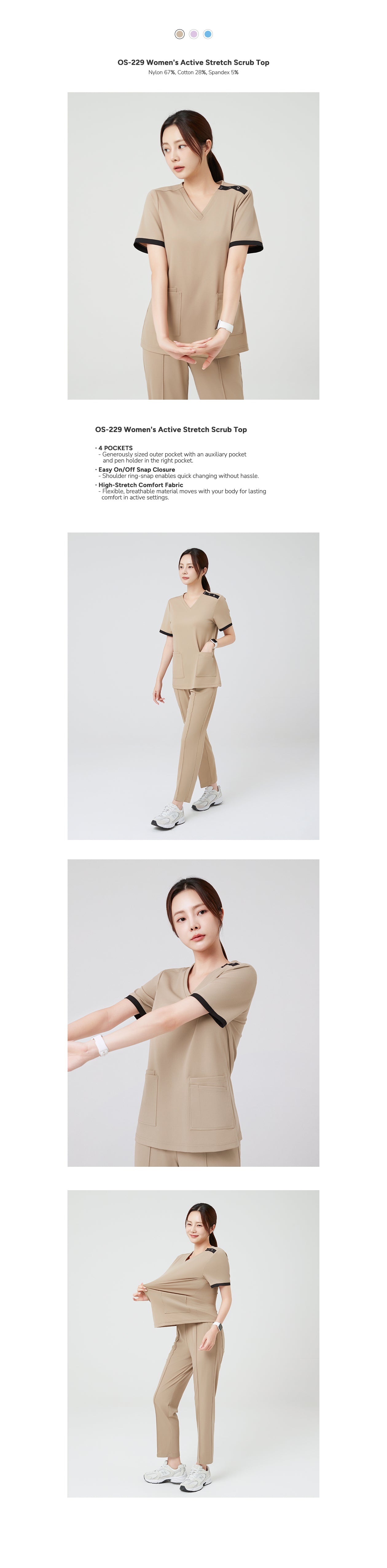The TUL OS-229 Women's Active Stretch Scrub Top in Sand Beige offers a professional look combined with superior comfort. Crafted from high-quality materials with active stretch fabric, it ensures a flexible, comfortable fit ideal for long shifts. Its tailored design balances functionality and style, making it a reliable choice for healthcare professionals seeking both durability and ease of movement throughout day.