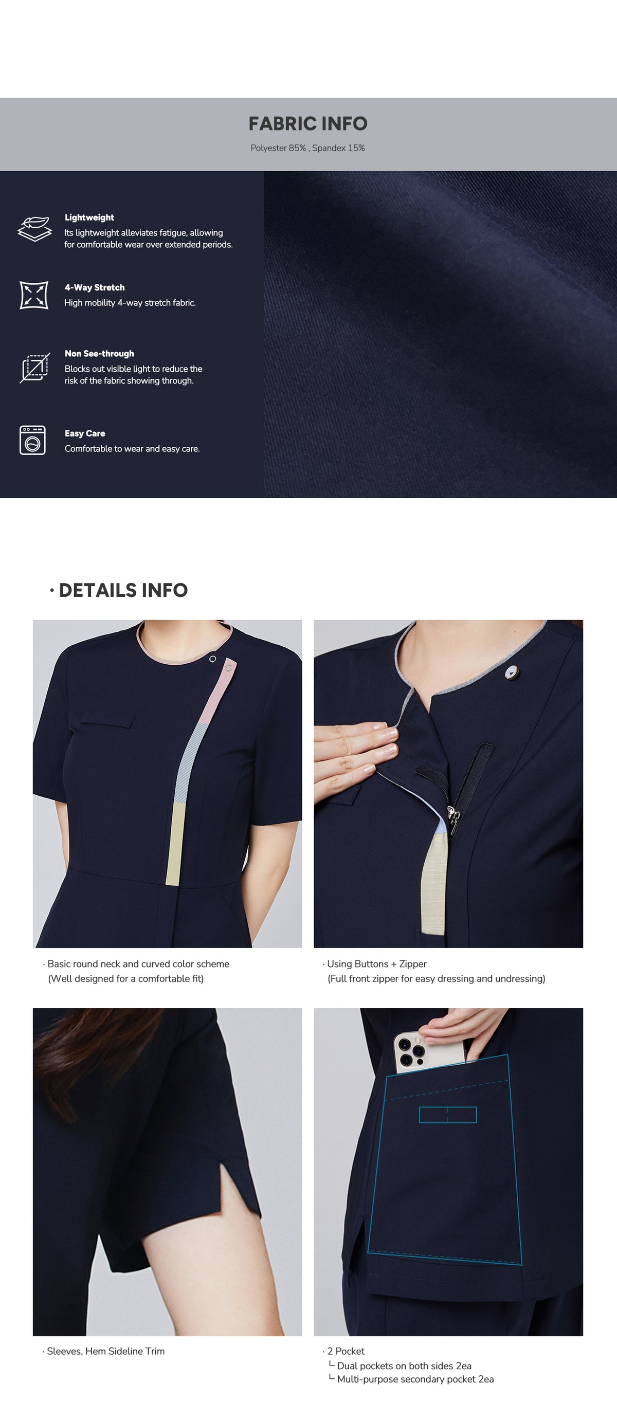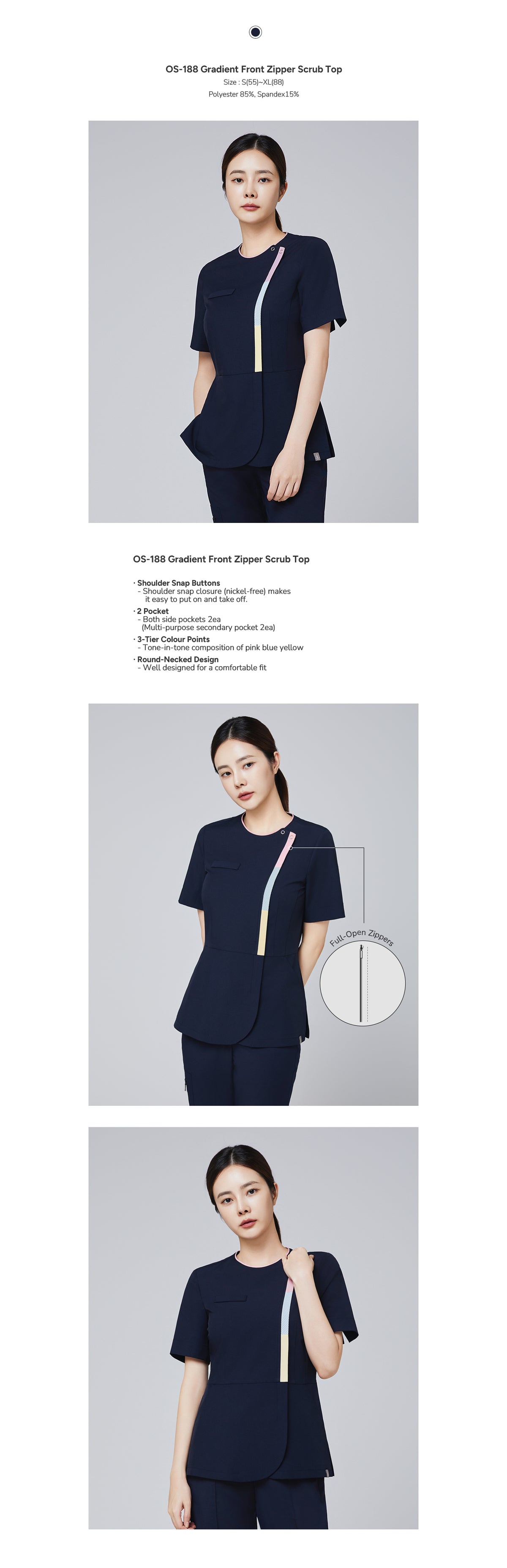 Zenir | Women's Gradient Front Zipper Scrub Top - Eco Navy