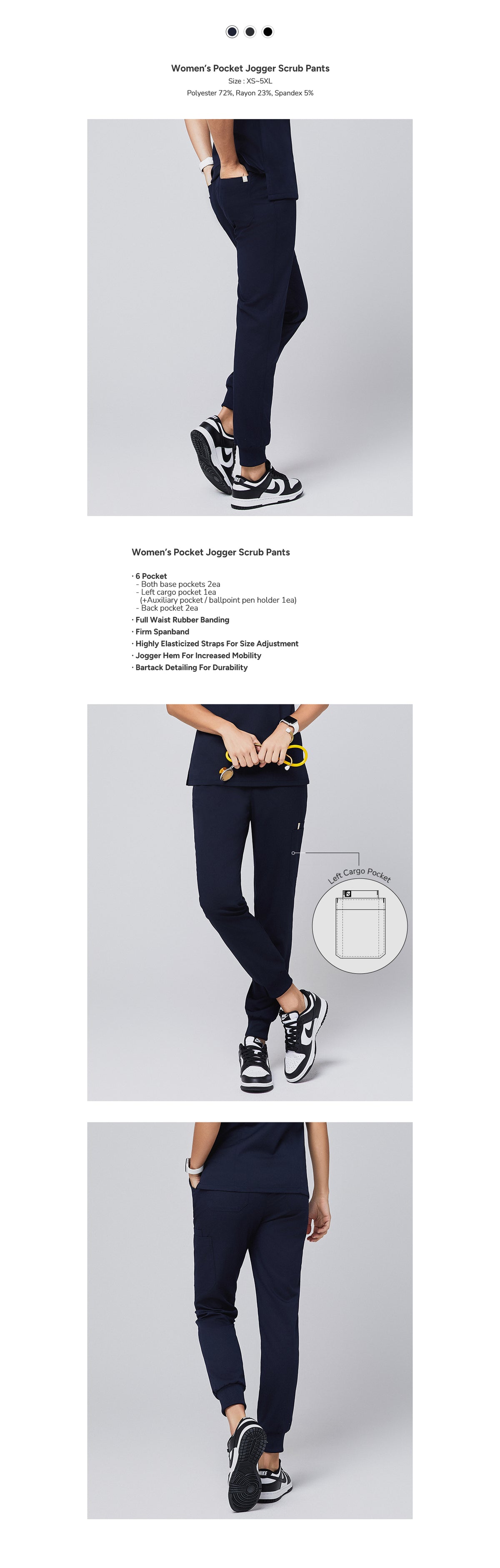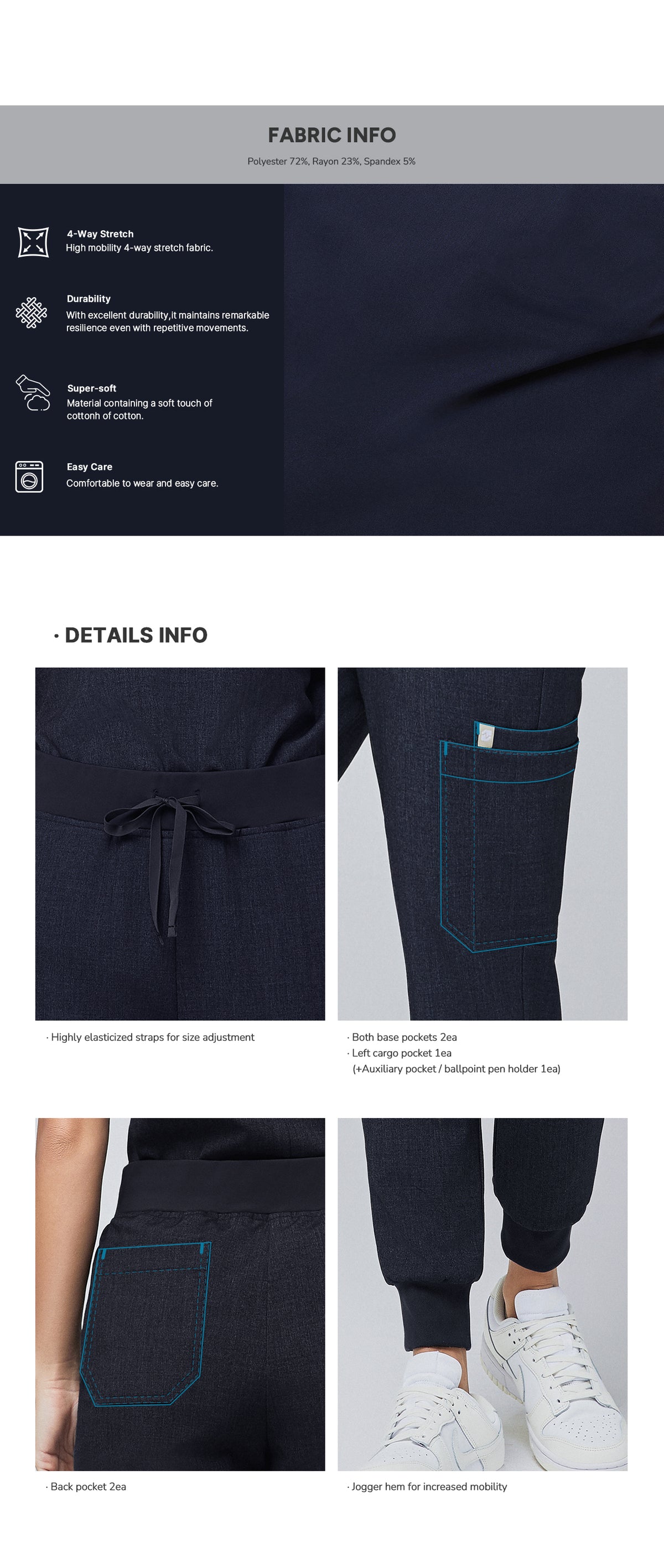Pocket jogger scrub pants in Navy combine a sleek design with elastic cuffs, multiple pockets, and durable fabric for all-day comfort and functionality.