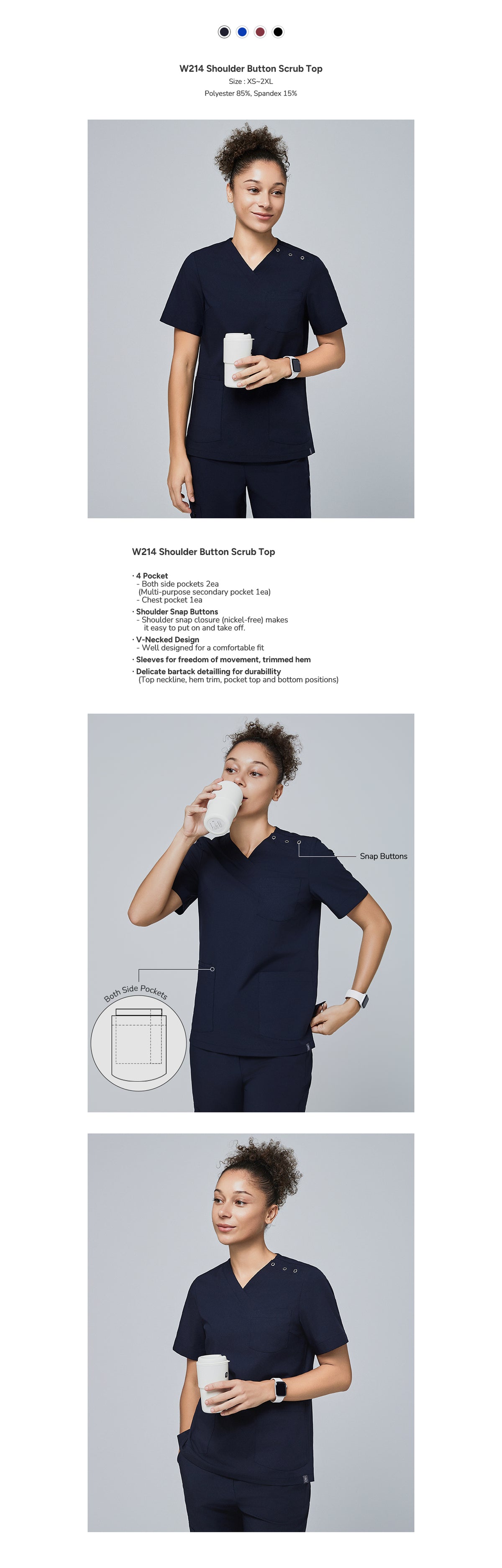 Add style and functionality to your workwear with the Women's Shoulder Button Scrub Top in Eco Navy. Crafted from sustainable fabric, it features button accents and a comfortable fit for all-day wear.