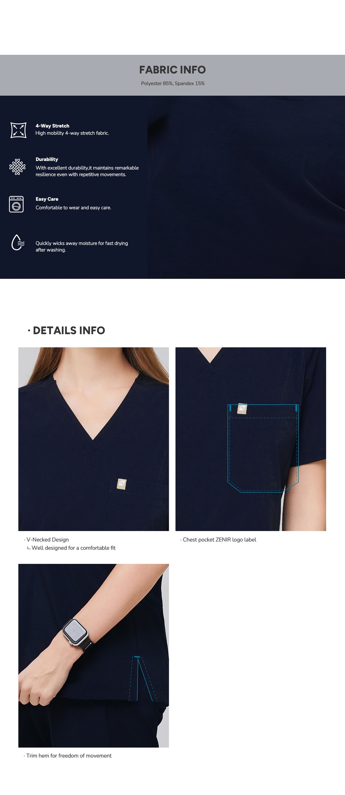 Zenir | Women's Single Pocket Scrub Top - Eco Navy