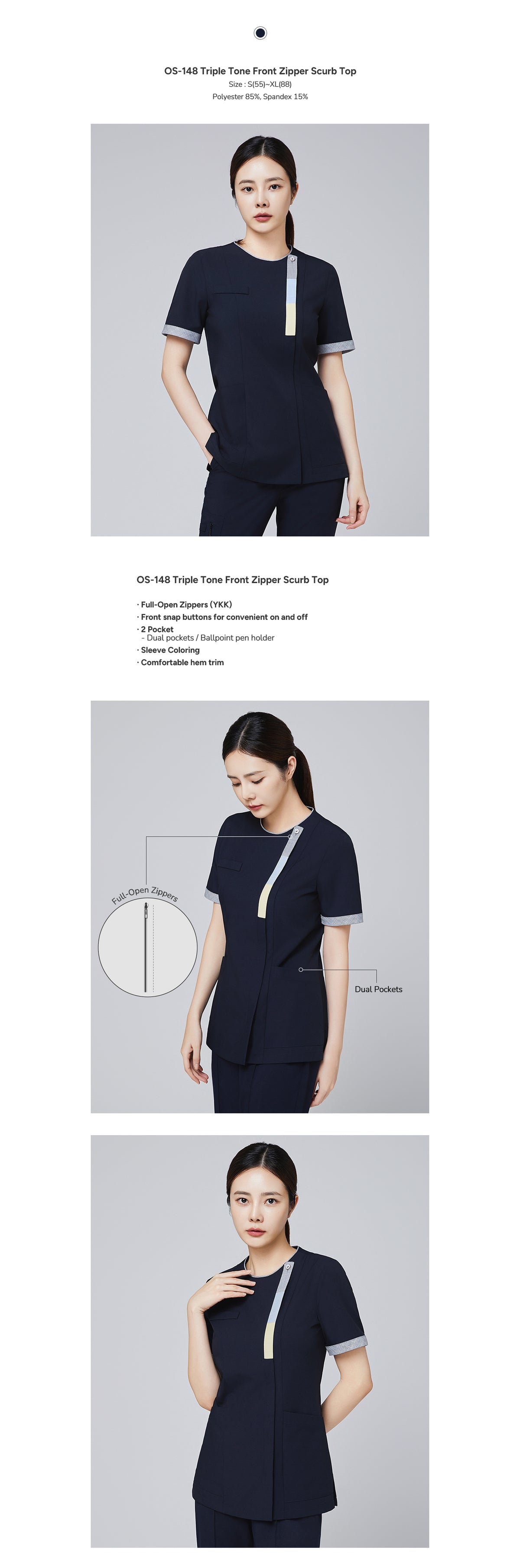 Zenir | Women's Triple Tone Front Zipper Scrub Top - Eco Navy