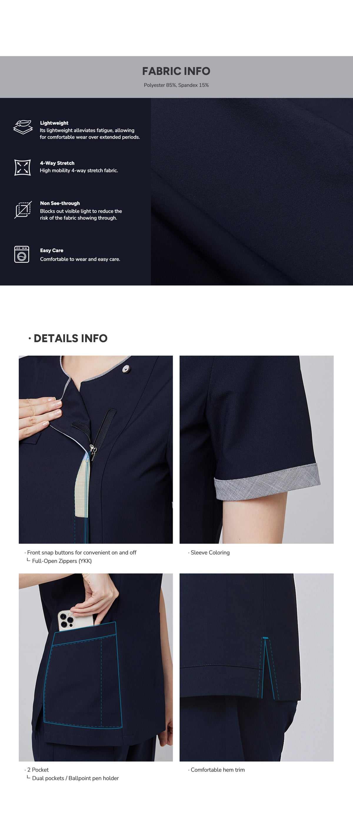 Stay stylish and functional with Zenir’s Eco Navy Triple Tone Front Zipper Scrub Top. Featuring a modern design and comfortable fit for healthcare professionals.