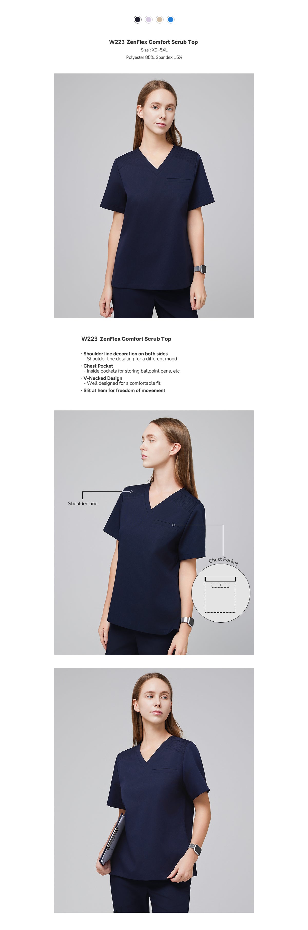 Stay polished and comfortable with this zenflex comfort scrub top in Eco Navy. Made from sustainable fabric, it features a tailored fit, elegant pleats, and breathable material for long shifts. Upgrade your workwear today!