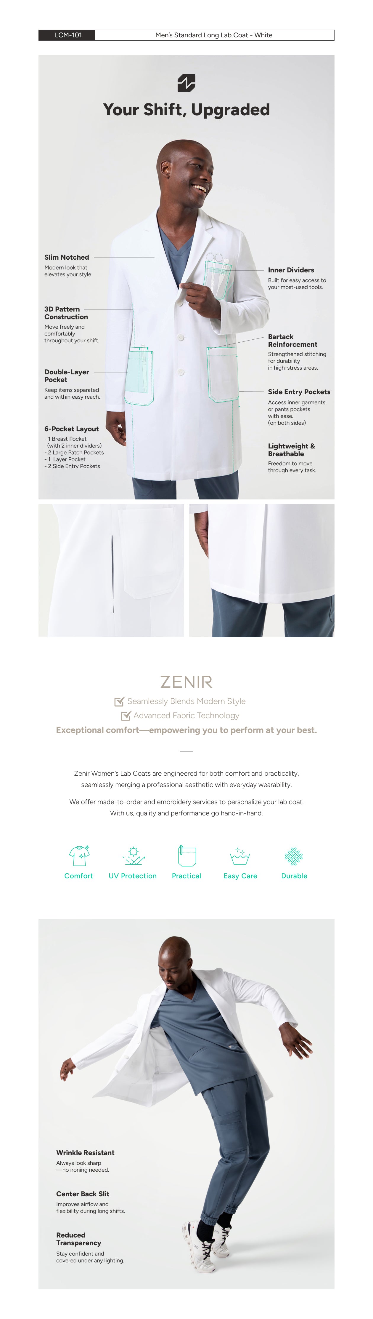 Zenir | Men's Standard Long Lab Coat LCM-101 - White