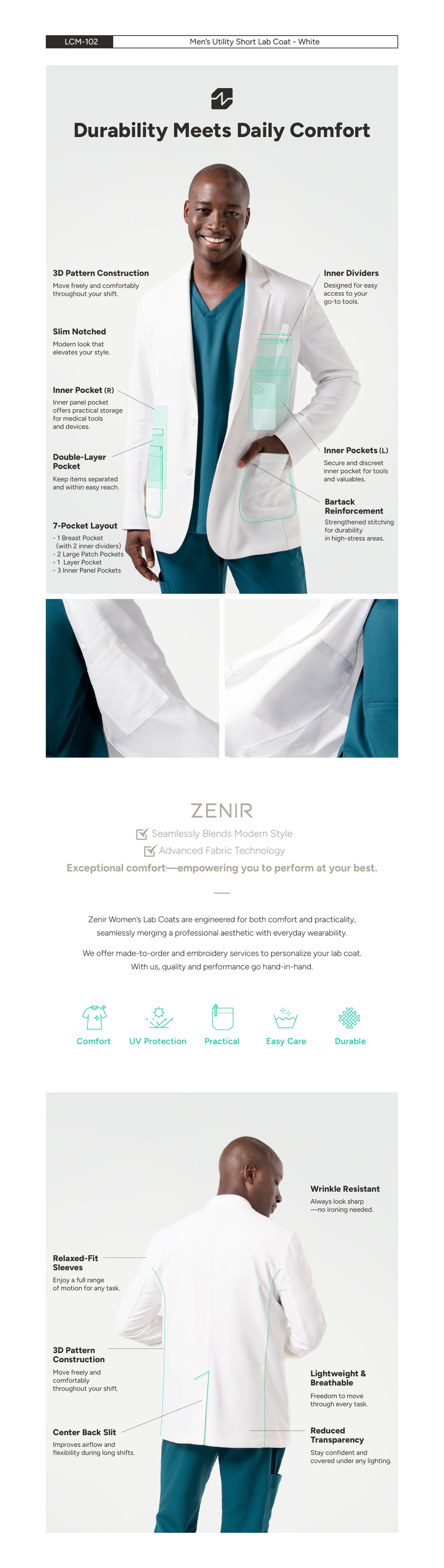 Zenir | Men's Utility Short Lab Coat LCM-102 - White
