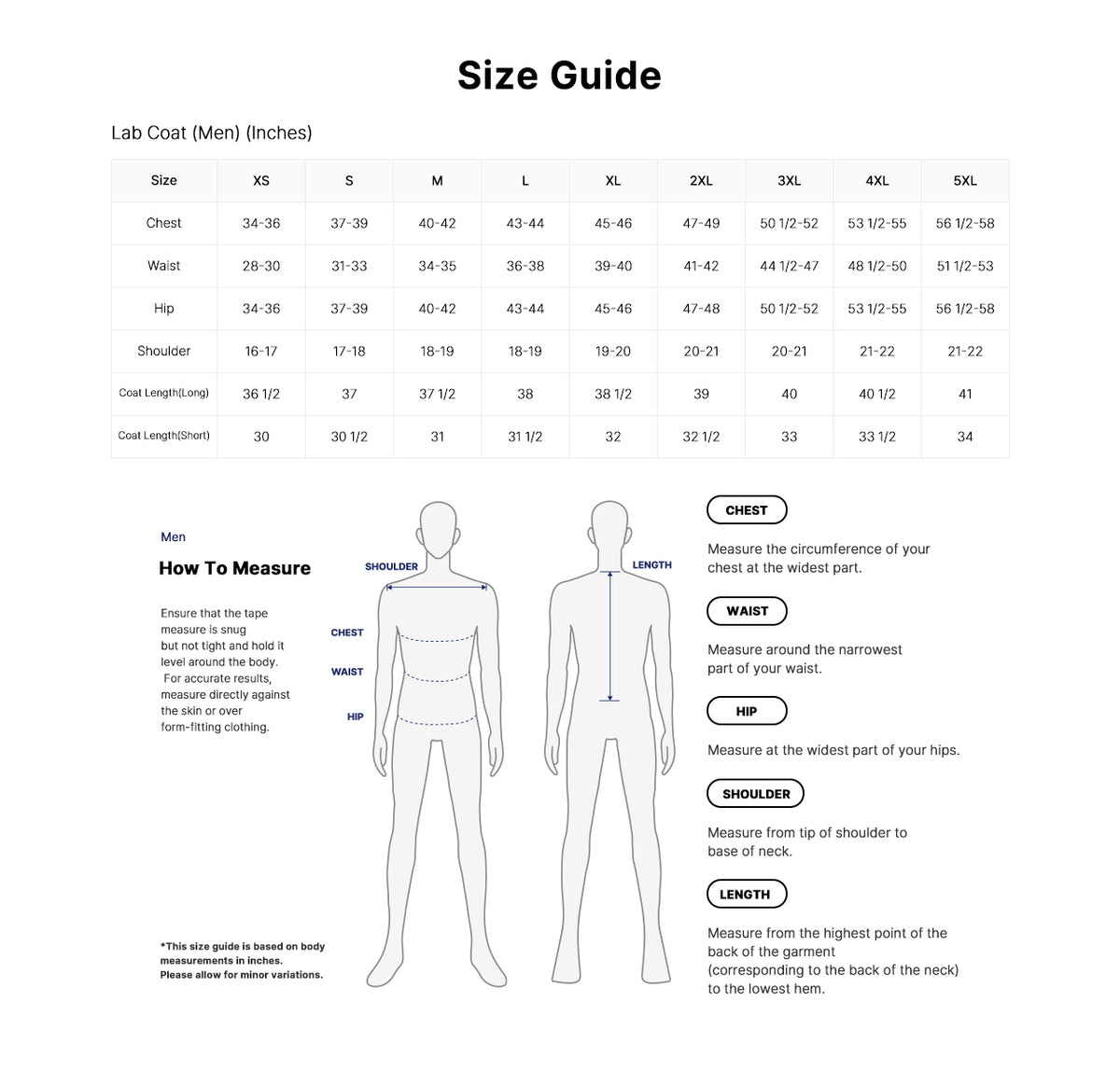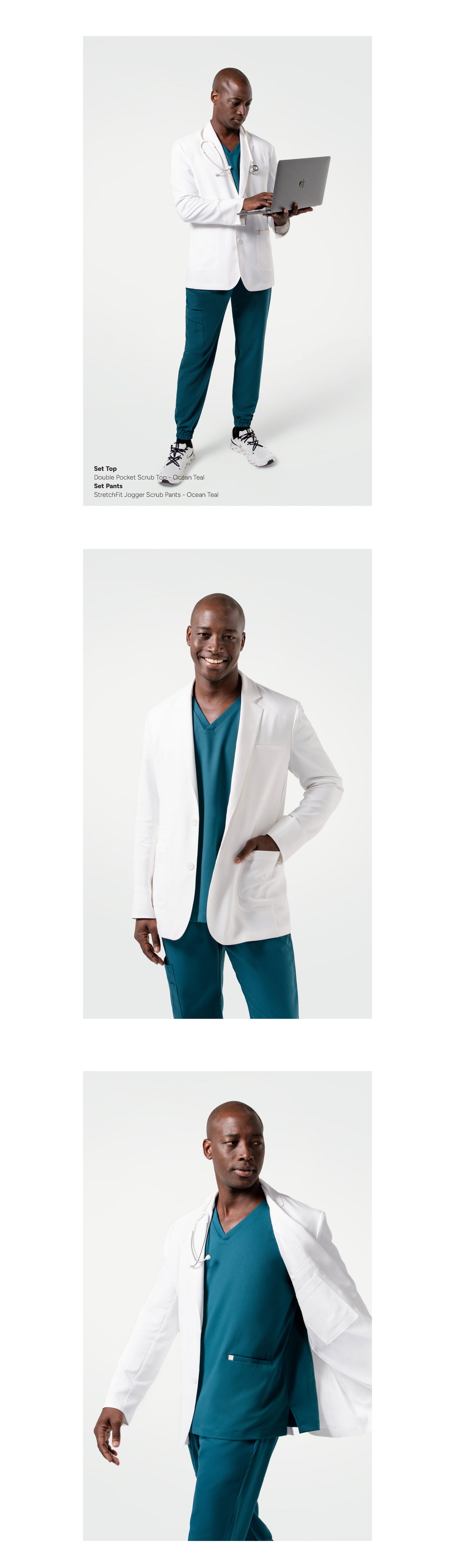Our standard short lab coat. Designed for doctors, nurses, pharmacists, and medical students who demand both professionalism and comfort.