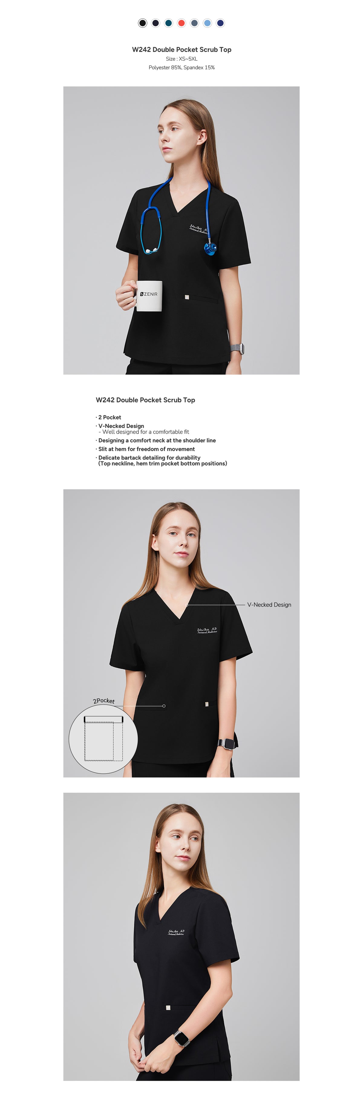 Upgrade your workwear with our Double Pocket Scrub Top, designed for both functionality and style. The pocket top ensures easy access to essentials while offering a sleek fit.