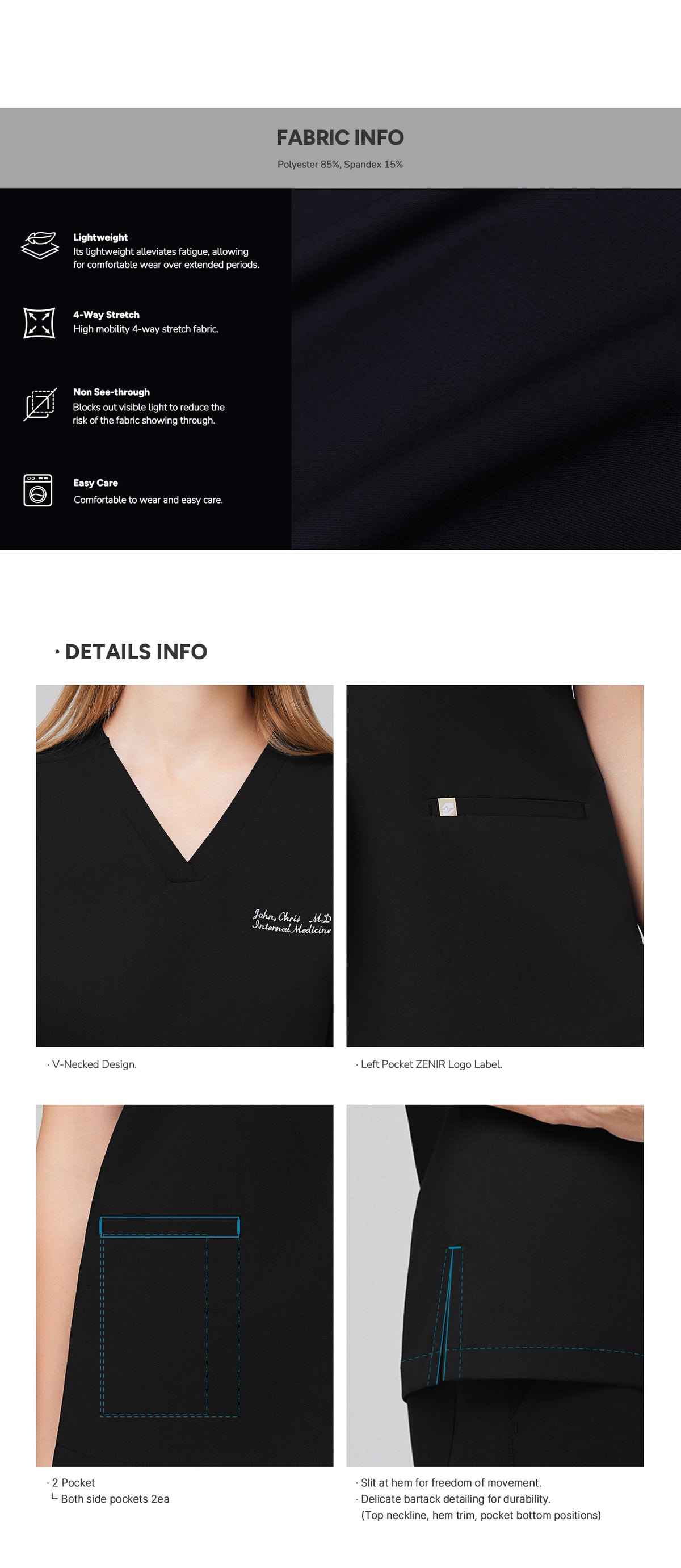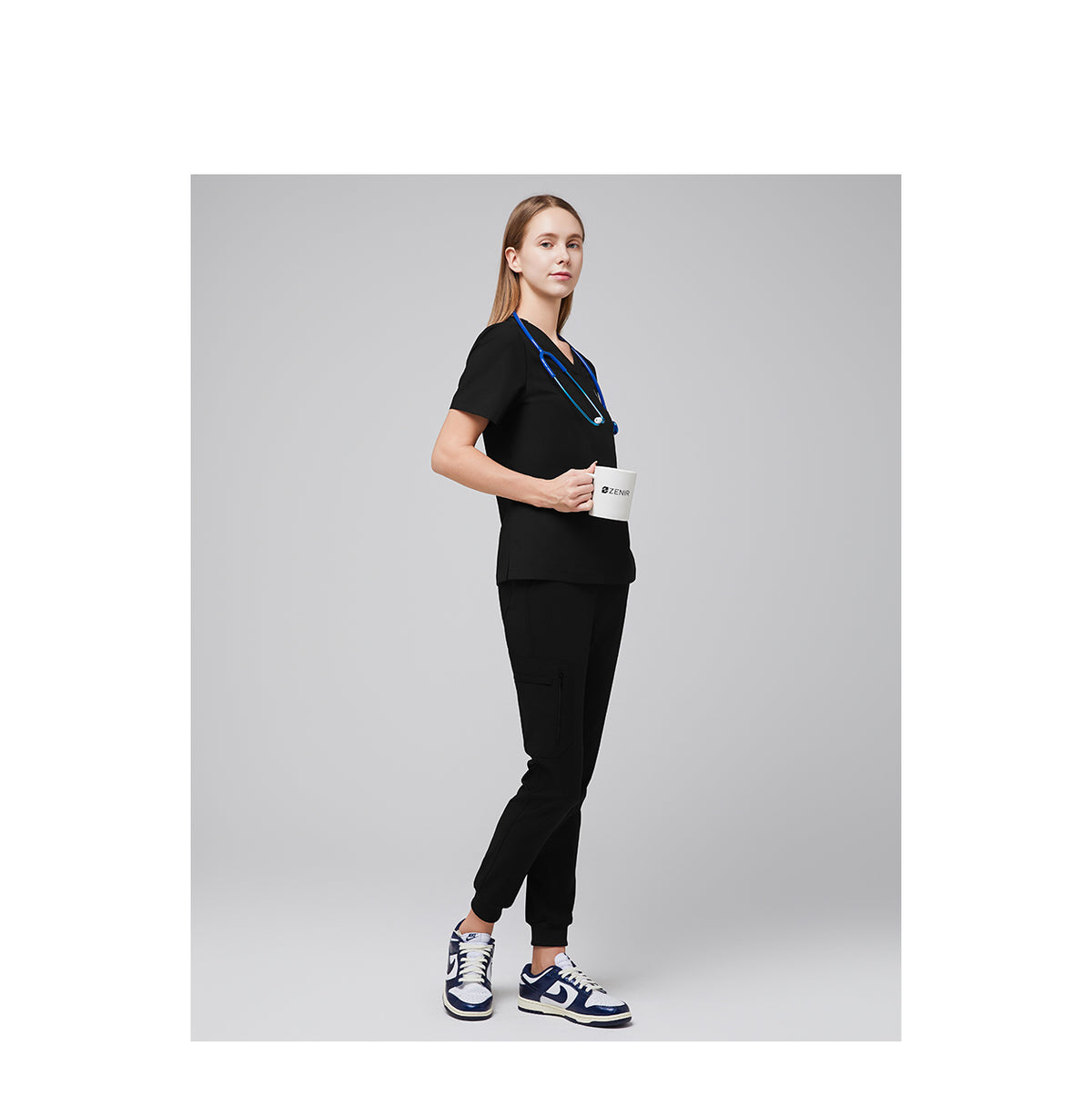 Zenir | Women's Double Pocket Scrub Top - Eco Black