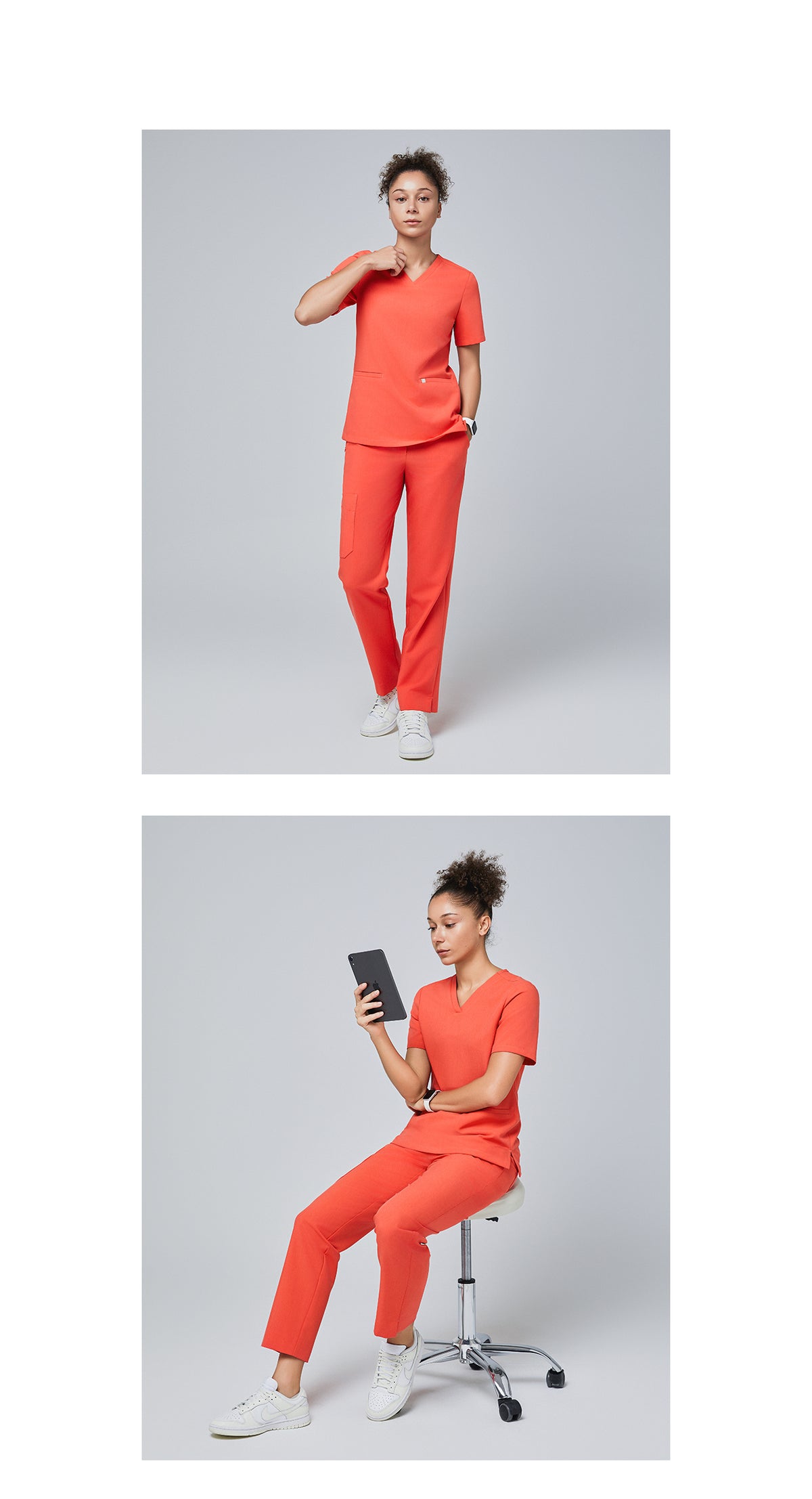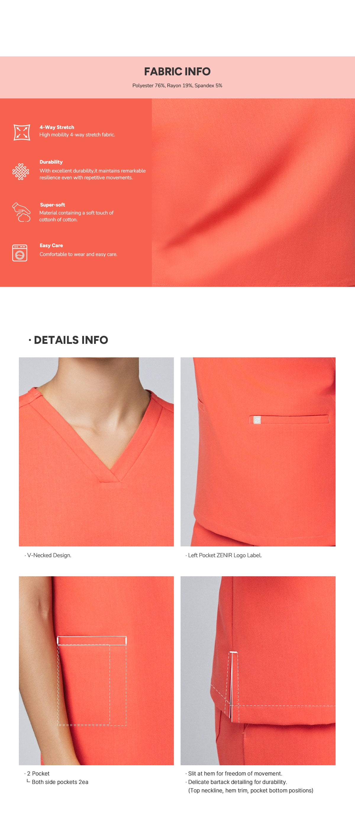Zenir | Women's Double Pocket Scrub Top - Tiger Orange